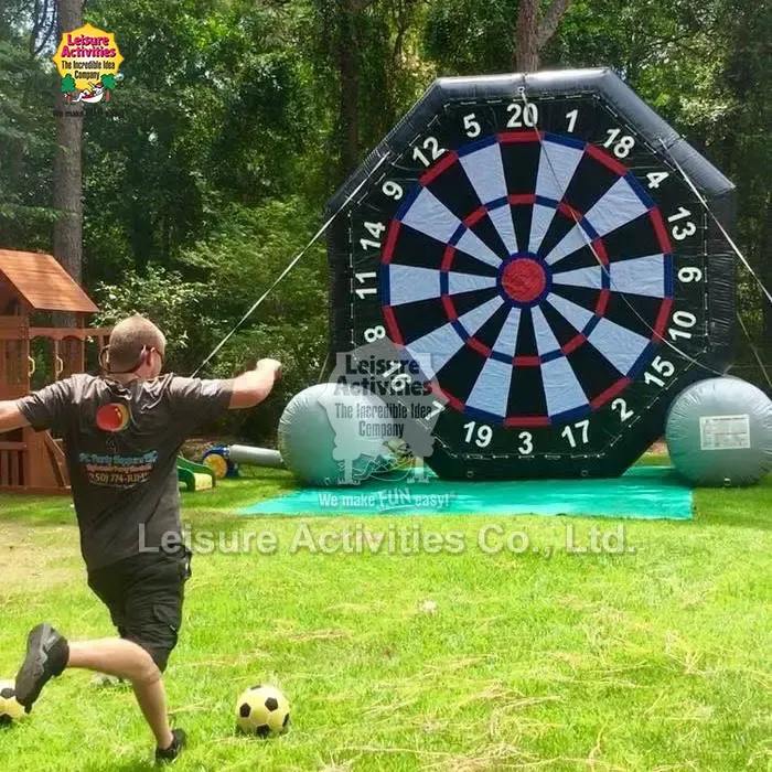 Leisure Activities® je profesionalni proizvajalec in dobavitelj napihljivih iger na Kitajskem z lastno tovarno. Giant Soccer Dart II Inflatable Sports je napihljiva športna oprema za zabave na prostem, ki združuje igranje nogometa in pikada. Izdelan je iz visokokakovostnega PVC materiala in ima tehnologijo dvonitnega šivanja. Primeren je za vse starostne skupine, priročen in vzdržljiv, ima popolne kvalifikacije in podpira prilagajanje ter je primeren za različne scenarije dejavnosti. Je stroškovno učinkovit izdelek, hkrati zabaven in praktičen.