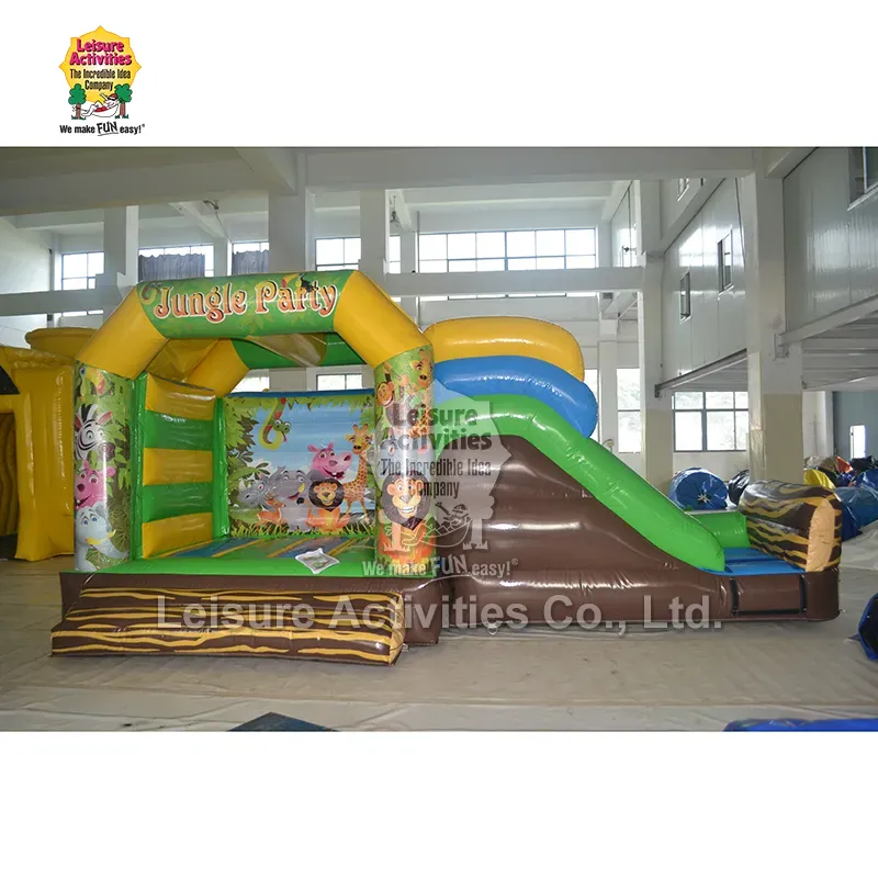 Leisure Activities ima lastno tovarno in je proizvajalec in dobavitelj majhnih napihljivih multiplay Bouncy Castles Jungle party s toboganom na Kitajskem. Ta napihljiv grad ponuja raznoliko zabavo, vključno s skakanjem, plezanjem in drsenjem, in je primeren za otroke od 3 do 10 let.